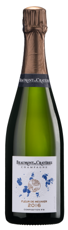 De cuvée Fleur de Meunier Champagne is uitsluitend afkomstig uit het ‘Cœur de cuvée’ bij het persen en bestaat voor 100% uit Meunier. Na een lange rijping komt deze cuvée met zijn Brut Nature-dosering volledig tot zijn recht en laat hij de rijkdom van het oogstjaar 2016 volledig tot uiting komen. Van de 9 samenstellingen die door onze keldermeester zijn ontwikkeld, is samenstelling nr. 9 geselecteerd omdat deze perfect aansluit bij de stijl van Beaumont des Crayères.